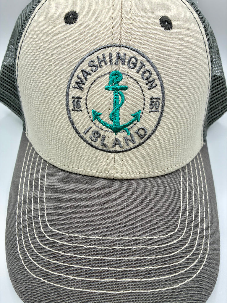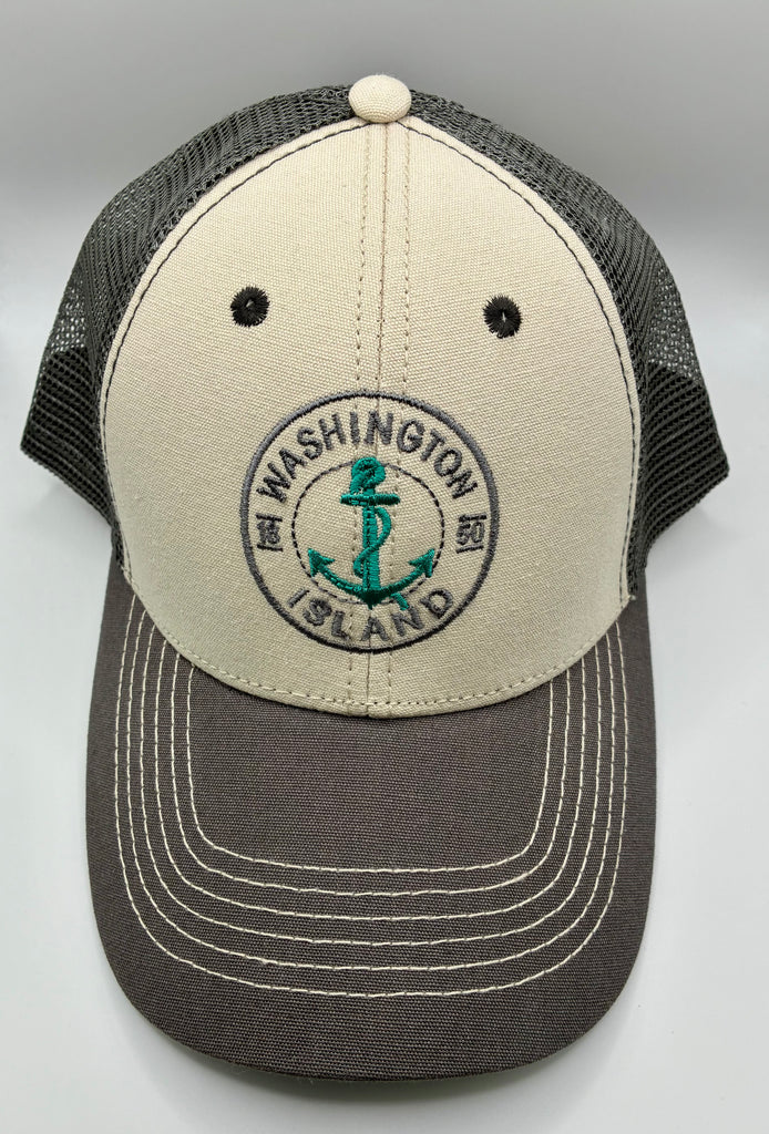 Embroidered Cotton Hat with a mesh back. Adjustable.