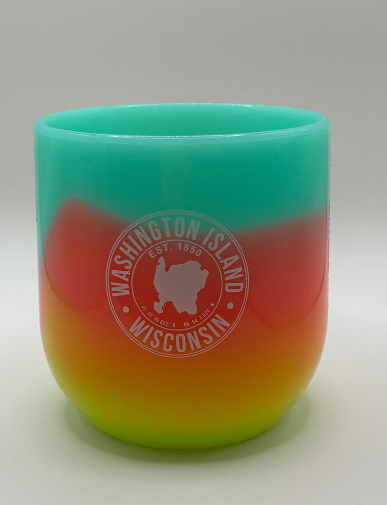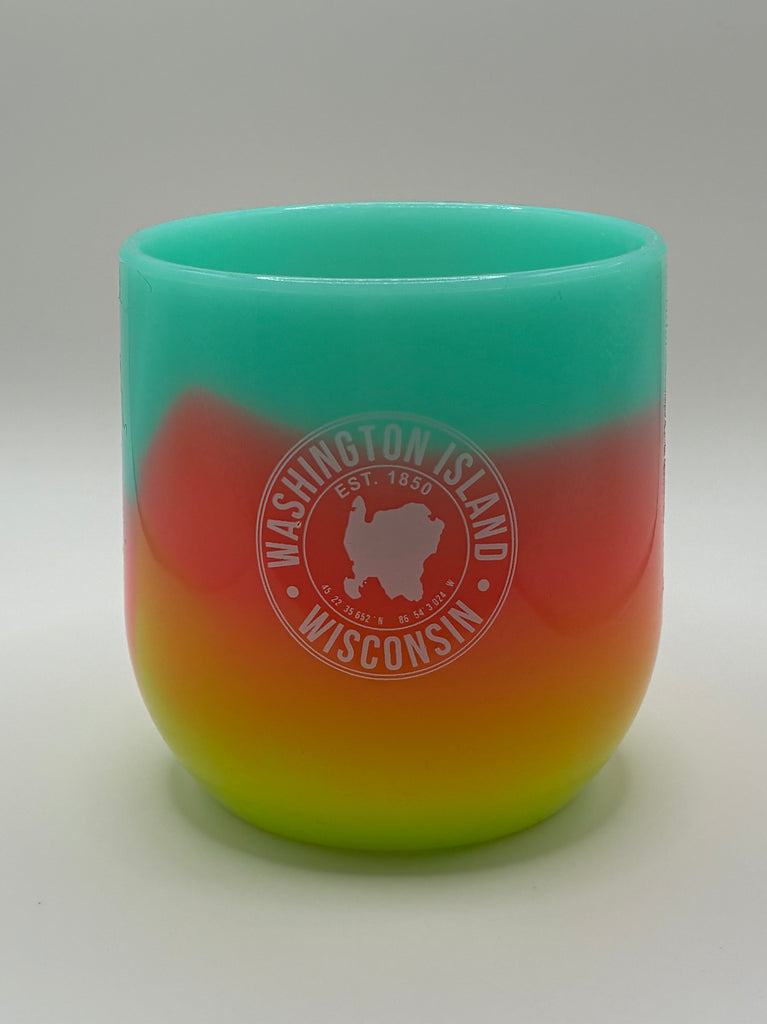 Made by Silipint, these durable wine glasses are both unbreakable and dishwasher safe. Your choice of “blue and green” or “rainbow” colors.